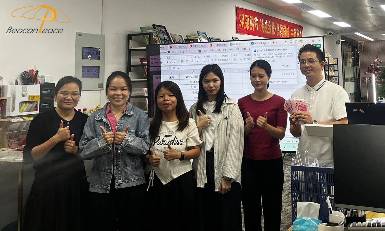 On November 7, 2025, Guangzhou Beacon Peace Outdoor Furniture held a grand October performance commendation meeting and November business launch meeting at its headquarters. This meeting not only recognized outstanding teams and individuals in the past month but also laid a solid foundation for the company's upcoming business challenges and goal planning, fully stimulating employee enthusiasm and teamwork.