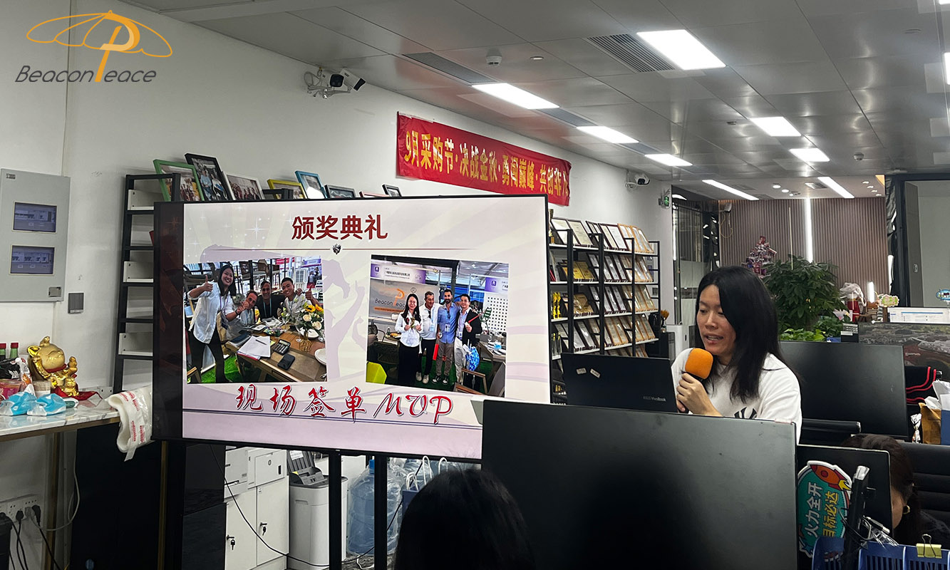 Next came the awards ceremony. Through this segment, we not only reviewed the hard work and outstanding performance of all company employees at the Canton Fair in October, but also fully affirmed the efforts and contributions of each individual.Each award-winning employee and team received recognition from the company, accompanied by enthusiastic applause and cheers, creating a warm and touching atmosphere.
