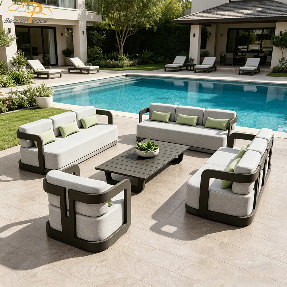 All Weather Outdoor Wooden Furniture Hotel Village Poolside Terrace Teak Wood Sectional Garden Sofa SetMOQ :