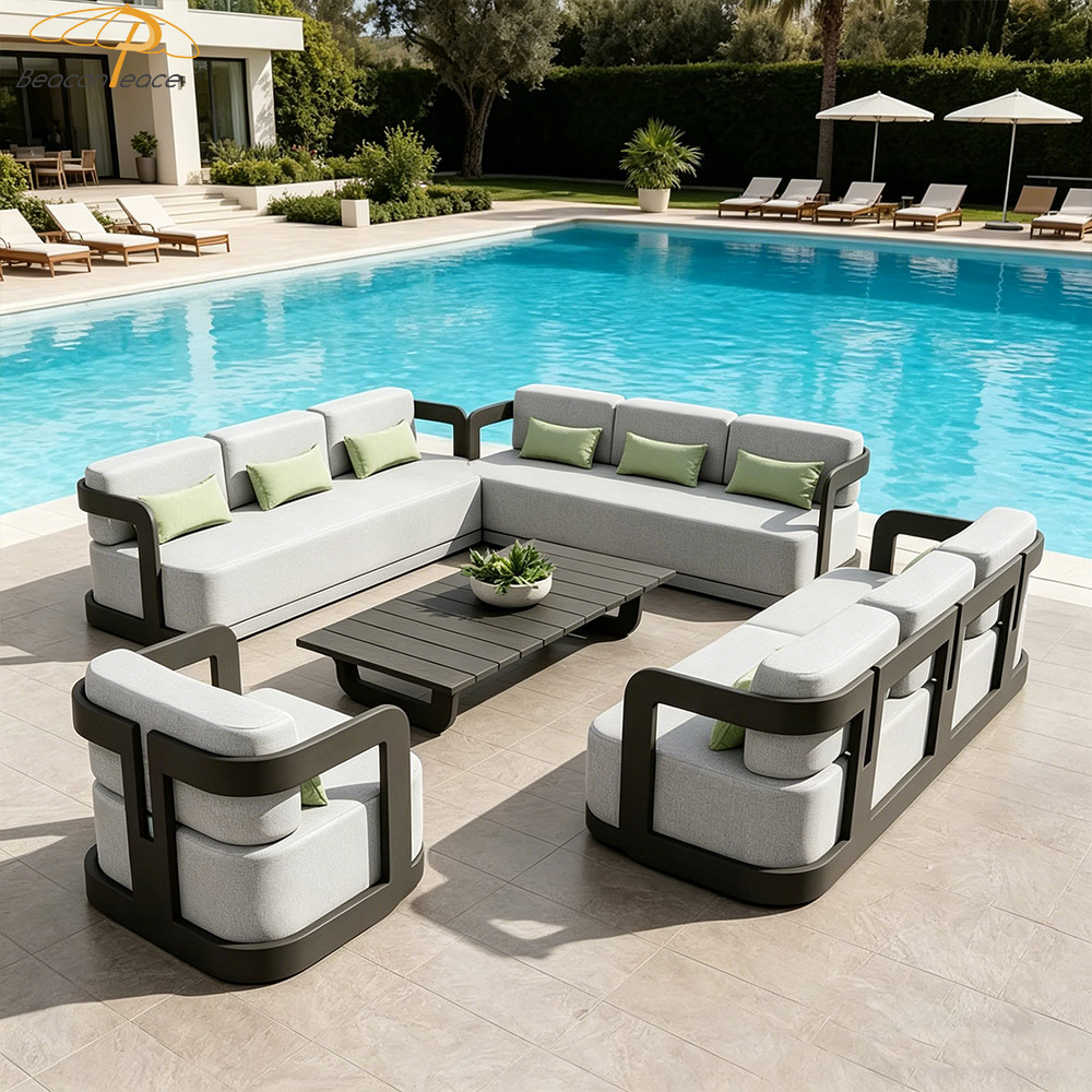 T/T, LC, OA is also available.All Weather Outdoor Wooden Furniture Hotel Village Poolside Terrace Teak Wood Sectional Garden Sofa Set