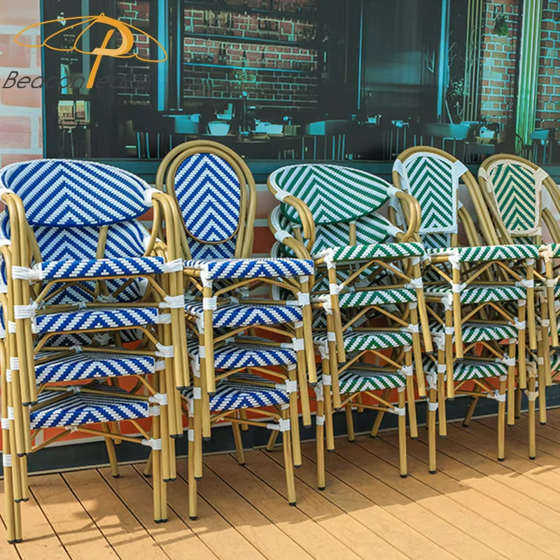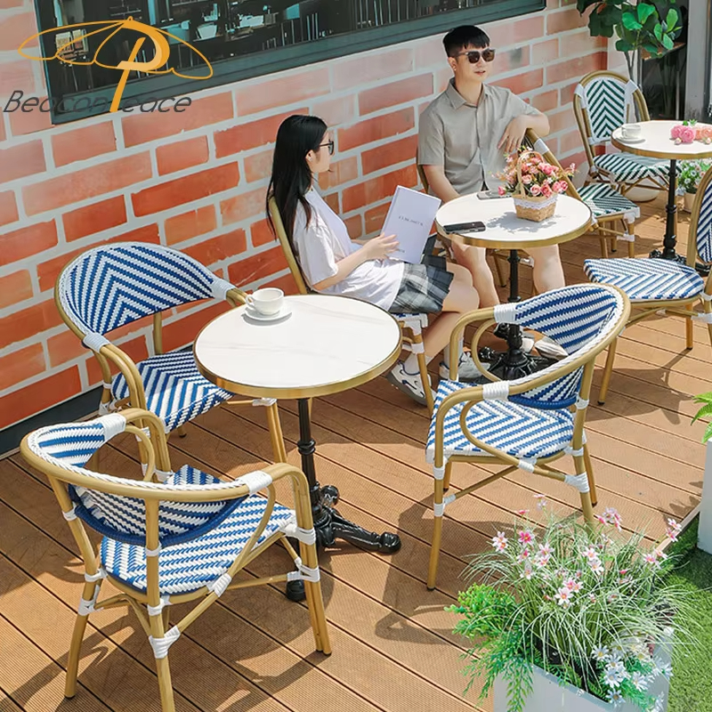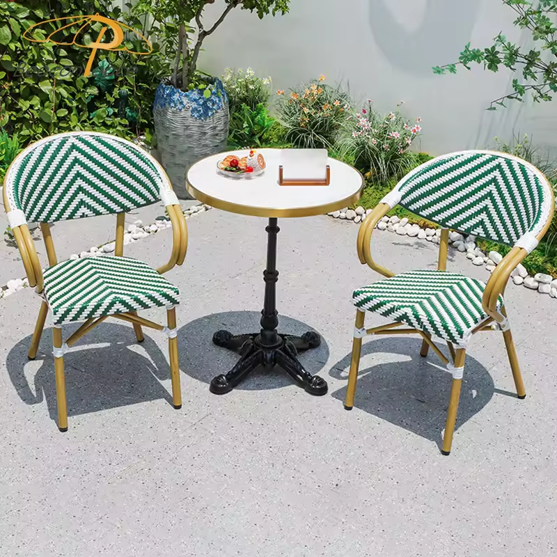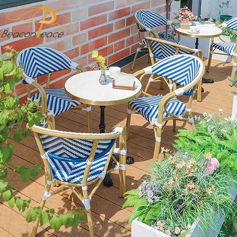 BP3775 Luxury Outdoor Furniture Patio Chair French Style Aluminium Frame Coffee Patio Rattan Dining Chair |