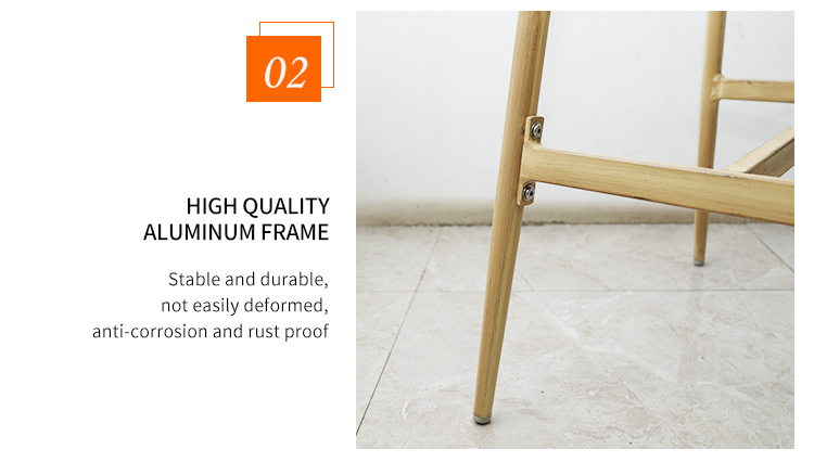 This outdoor bar stool is made of high-quality aluminum alloy with a unique brushed wood grain finish, showcasing a perfect combination of the natural texture of wood grain and the sturdiness and durability of modern aluminum alloy. Whether placed on a balcony, terrace, or outdoor dining area, it brings a simple yet elegant atmosphere, enhancing the style of your outdoor space. Add a touch of nature and comfort to your outdoor life; choose this brushed wood grain outdoor bar stool and enjoy every moment of comfort and relaxation.