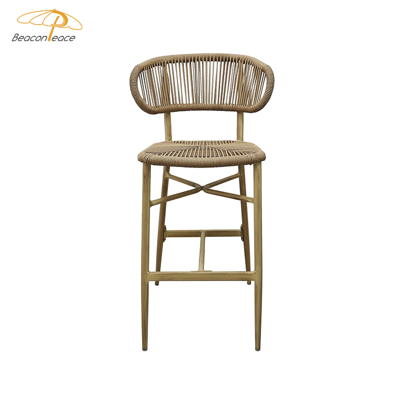 BP8703 Modern Cafe Outdoor Furniture Aluminium Frame Brush Wood Grain High Stool Bistro Dining Bar Chair |