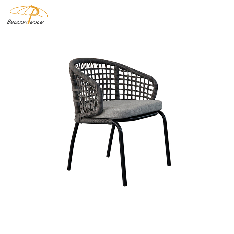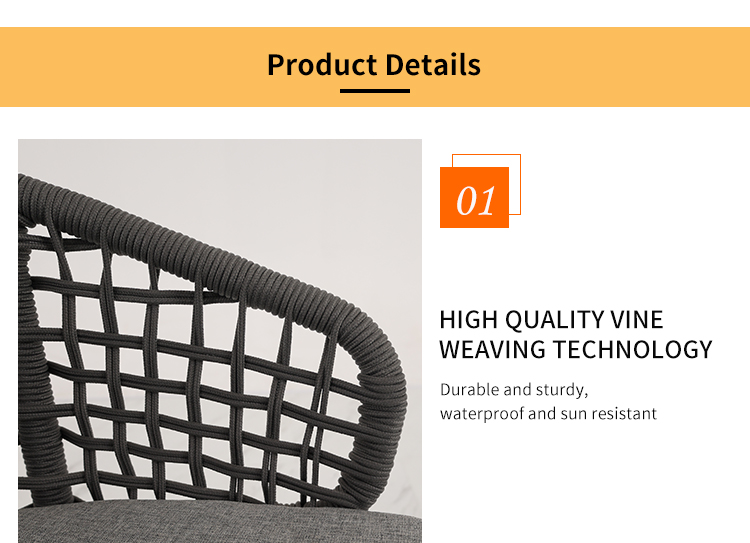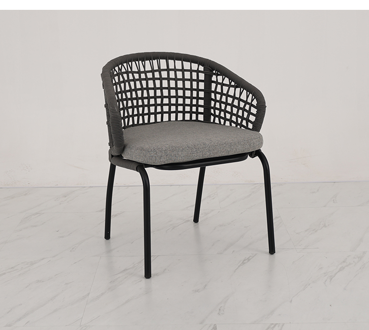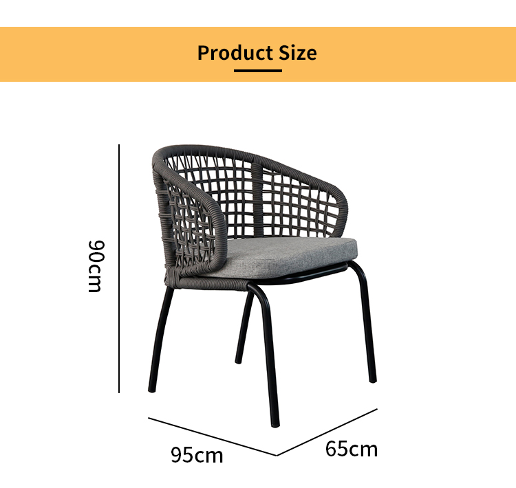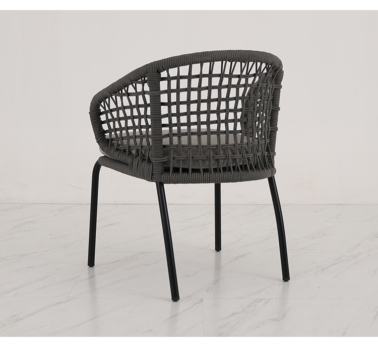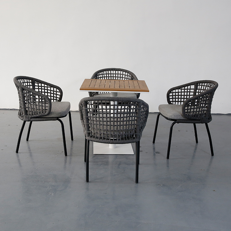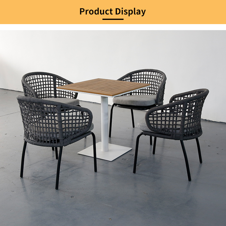 This outdoor dining table and chair set combines durability and aesthetics, making it perfect for any outdoor dining occasion. The combination of a wood-plastic composite tabletop and a spray-painted metal base is both modern and durable, able to withstand the test of various outdoor environments. The aluminum alloy chair frames and the design with woven rope embellishments not only provide comfort but also add a unique artistic touch. Whether for family gatherings or get-togethers with friends, it offers an elegant and comfortable dining experience.
