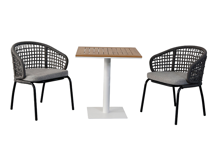 Aluminum Frame with Rope Weaving Chair + Plastic Wood Desk Top Metal Base TableVorlaufzeit :