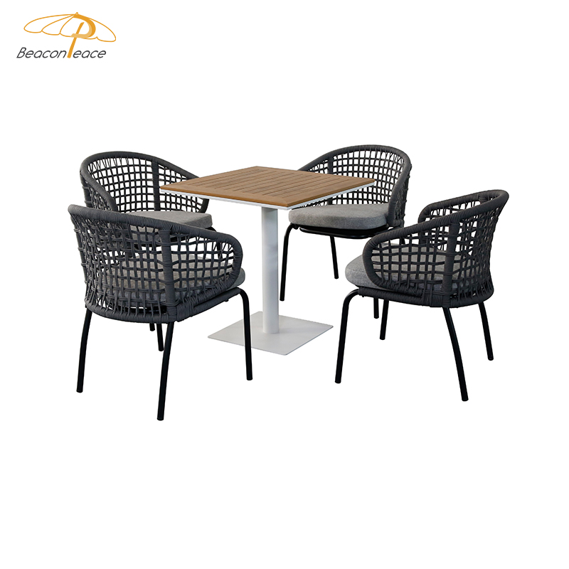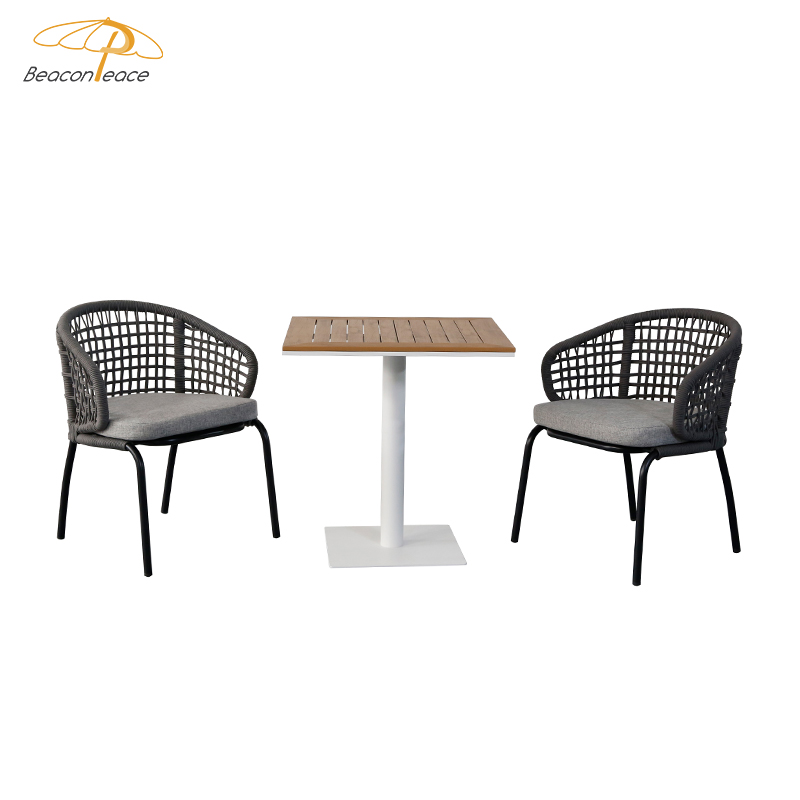 BP8706 Modern Outdoor Restaurant Furniture Plastic Wood Desk Top Aluminium Patio Garden Dining Table and Chair SetMOQ :