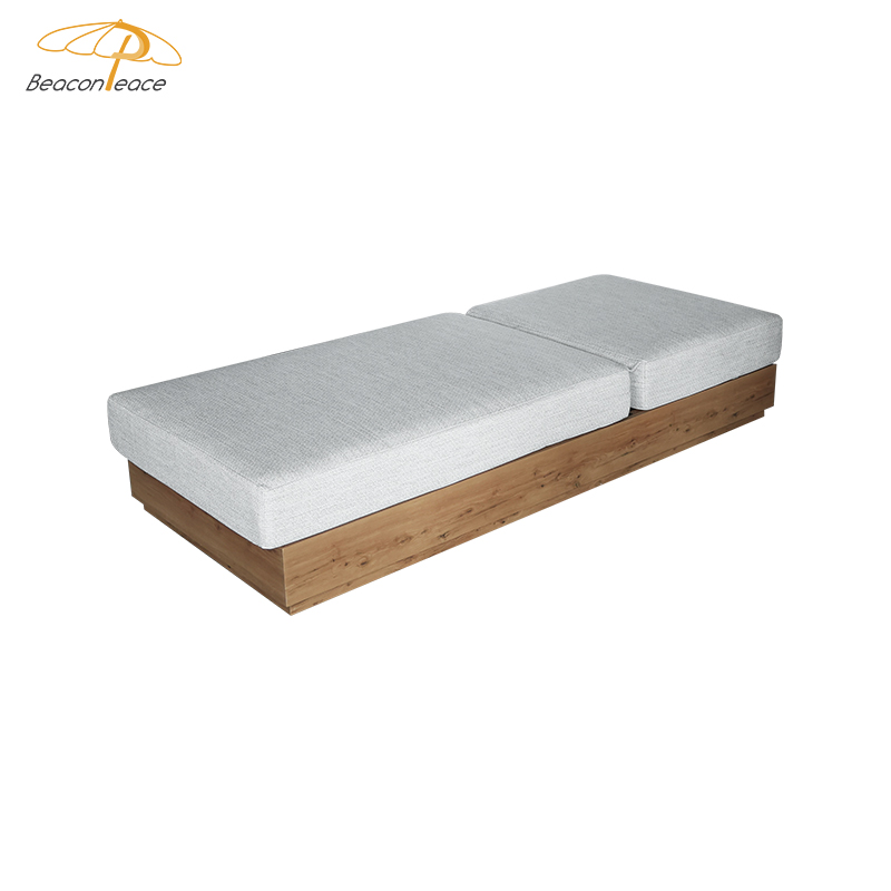 This outdoor bed is made of high-quality aluminum alloy frame, which is lightweight and durable. The heat-transferred wood grain base gives it a natural and elegant appearance, perfectly integrating into any outdoor environment. The adjustable back design allows you to easily find the most comfortable angle, and the comfortable sofa cushions provide soft support, allowing you to enjoy your leisure time in the sun.