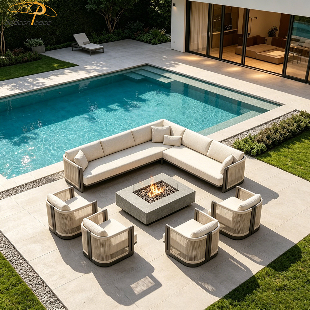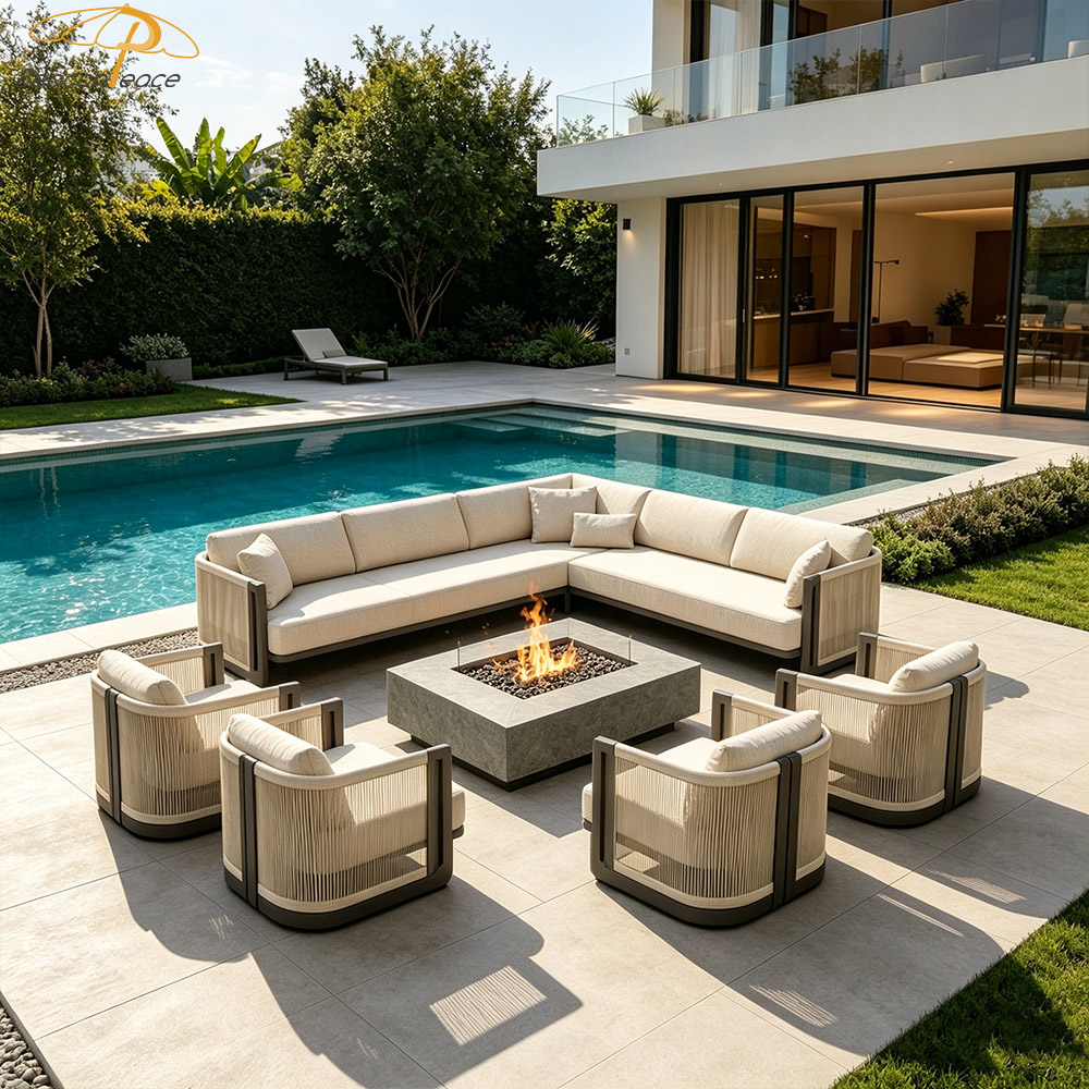 T/T, LC, OA is also available.Nordic Design Luxury Outdoor Garden Furniture L Shape Villa Resort Teak Wood Patio Sectional Sofa Set