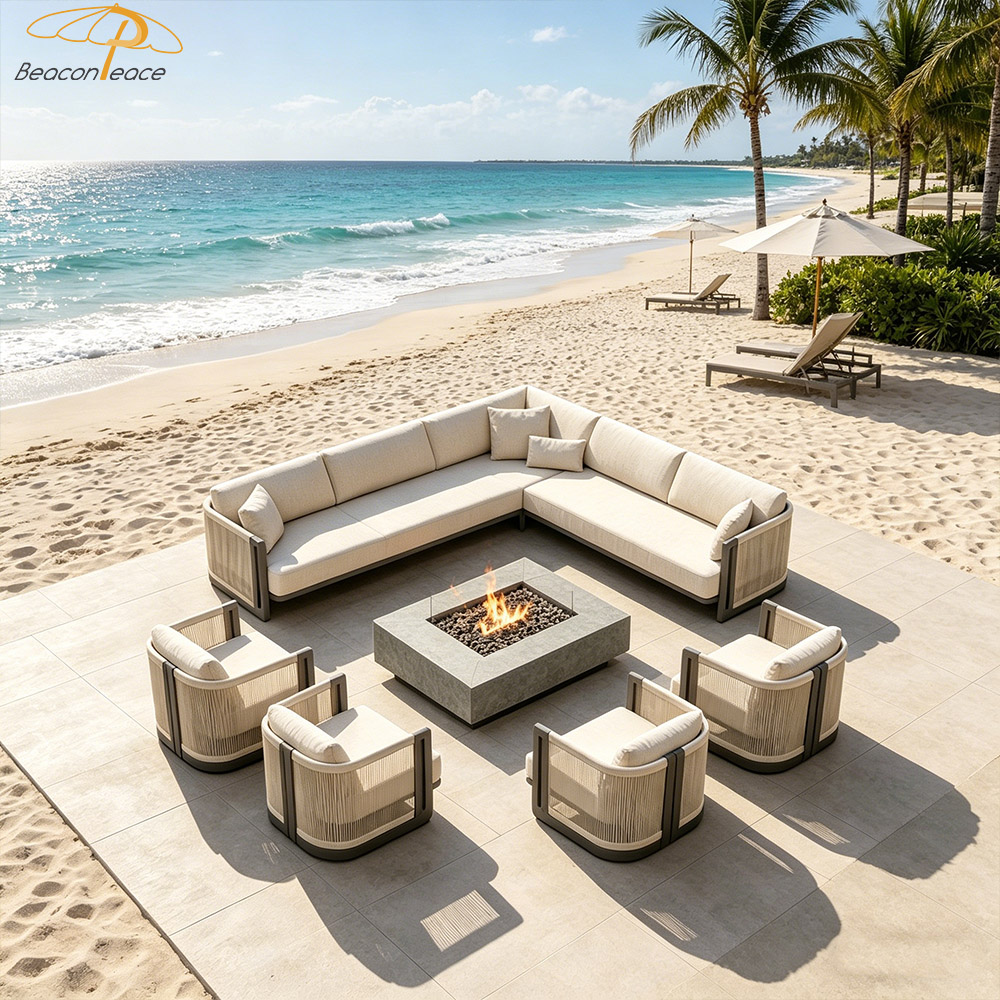 NEW-4103 Nordic Design Luxury Outdoor Garden Furniture L Shape Villa Resort Teak Wood Patio Sectional Sofa Set |