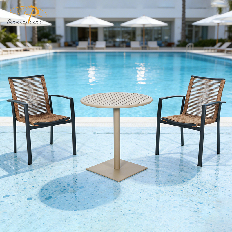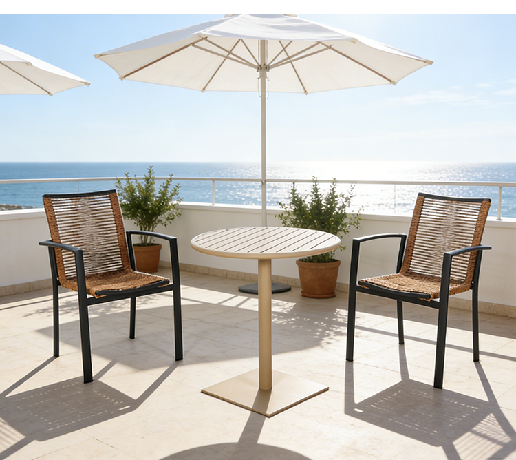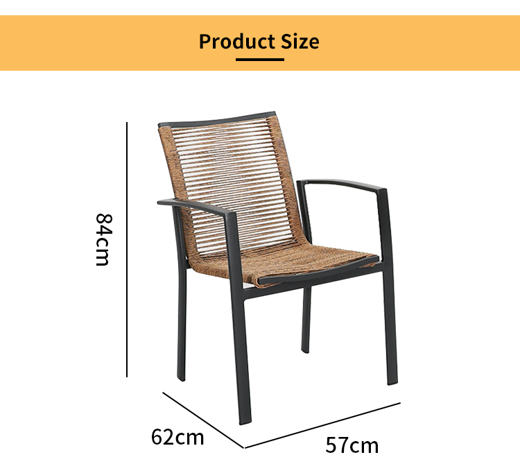 Table:aluminum frame with powder coated finish Chair:aluminum frame+outdoor rope weaving |