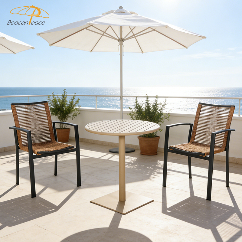 BP4032&2040 Nordic Leisure Outdoor Aluminium Furniture Round Table Patio Garden Rattan Dining Set for Restaurant |