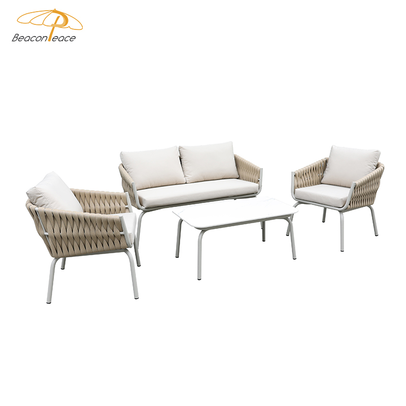 BP3077 Nordic Outdoor Patio Furniture Aluminium Frame Rope Woven 4 Pieces Garden Sofa Set |